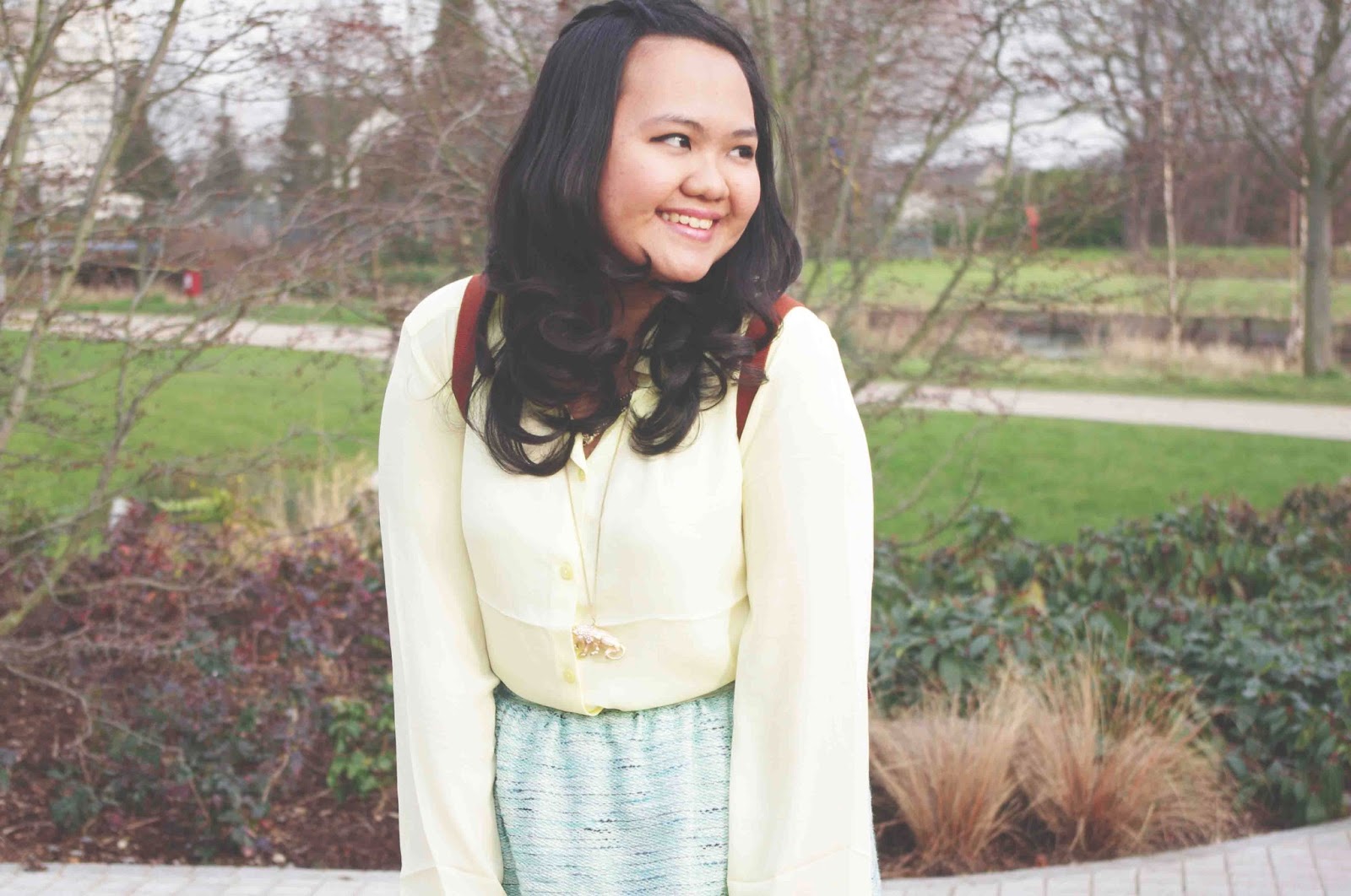 lovely outfit, really like the colors. also your shoes are amazing <3